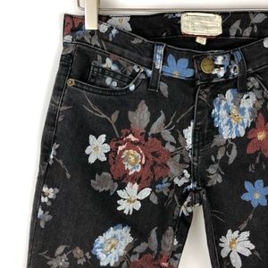 Vintage-inspired blooms freshen up a pair of faded black Current/Elliott skinny jeans. These are finished with 5-pocket styling and an ankle-length leg. Single-button closure and zip fly. A true eighties skinny that hugs every curve, cropped at the ankle. No rips, stains or tears. Lightly worn. Great condition. As seen on actress Jessica Alba.