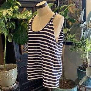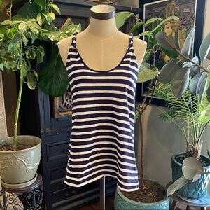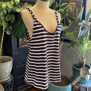 Current/Elliott The Twisted Striped Tank. Navy & white with red outline.