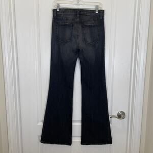 Washed black (shade name is Torpedo) The Wray Wide Leg Jeans by Current/Elliott. Flared / wide leg silhouette, mid-high rise. Excellent pre-owned condition. Rise measures approx. 9.5 inches. Inseam measures approx. 32.5 inches.