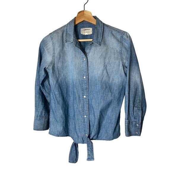 Current/Elliott Womens Tie Front Chambray Shirt Size 0 Western