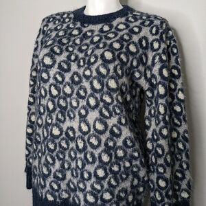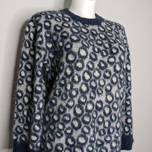 Current/Elliott blue white grey abstract dot bubble sweater 8. This is an oversized sweater and well as an XL. Some matting of the material. Current/Elliott size 3.