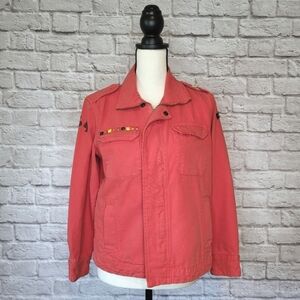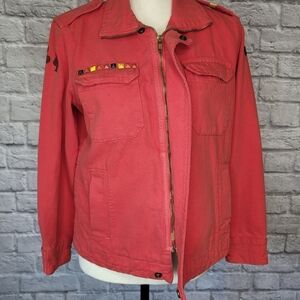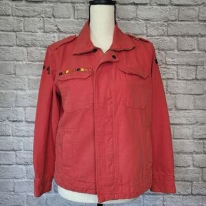 Current/ Elliott womens jacket in a faded reddish orange. Size tag is missing but fits like a size M. Please see measurements for fit.