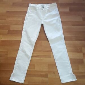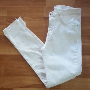 Frayed split hems make your kicks look that much cooler in this high-waist silhouette and crispe white jean. Featuring 5-pocket styling and just a hint of stretch - they're a no-fail option that will take you fron season to season. Excellent Condition.