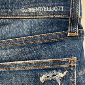 Current/Elliott distressed skinny jeans size 27 in great condition. Waist approximately 14.5” flat, inseam length is 28” and rise is 8”.