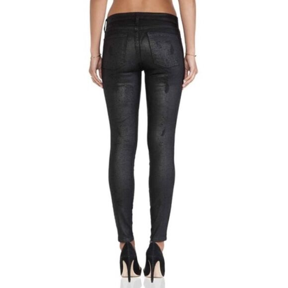 Current/Elliott The Ankle Skinny Black Jeans Size 27 Printed Trucker Coating