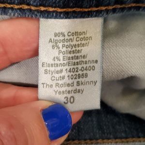 A well-loved deep-blue wash adds to the cool vibe of stretch jeans with a lean fit and chic, rollable cuffs.