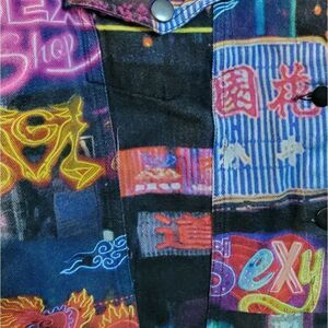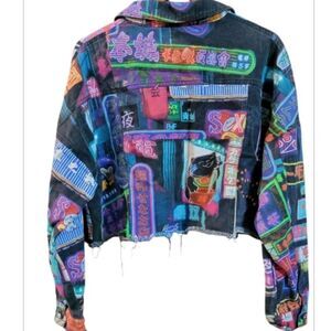 Vibrant cropped jacket with a unique, colorful design. Perfect for adding a pop of color to any outfit.
