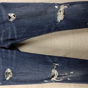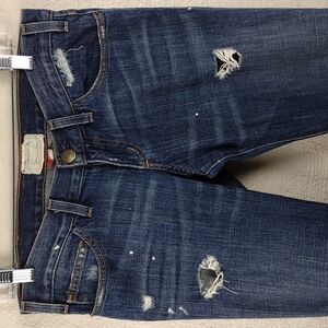 Current/elliott The Skinny Blue Dark Wash Five Pocket Low Rise Distressed Jeans
