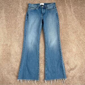 Current/elliott The Wray Wide Leg Raw Hem Medium Wash Cotton Denim Blue Jeans 27