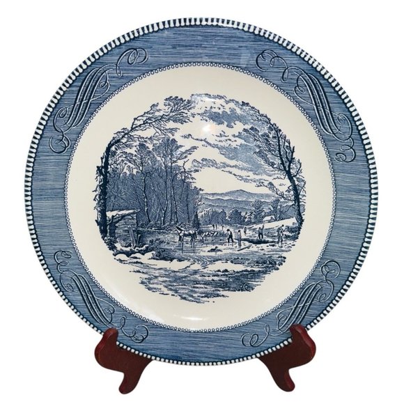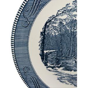 Currier & Ives Royal China Blue Chop Plate 12" Round Platter Plate Getting Ice