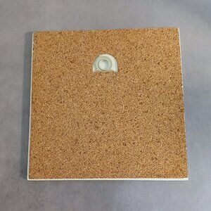 6" x 6" and .25" thick. Cork backing. Hang or display on plate holder. I also have American Railroad Scene-Snow Bound tile for sale.