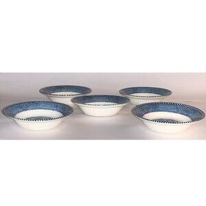 Currier and Ives 5 1/2” Dessert / Fruit Bowls, “Children On Fence” (Lot of 5)