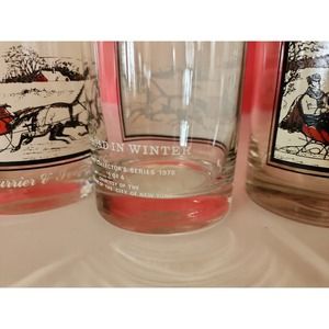 Currier and Ives Christmas Glasses Sleigh Ride Drink Glass Cups Vintage Set Of 4