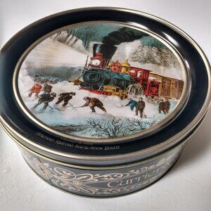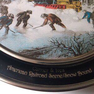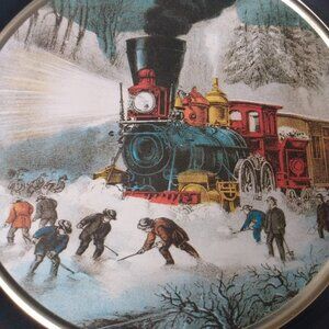 Currier and Ives Large Tin: American Railroad Scene/Snow Bound