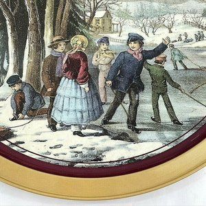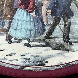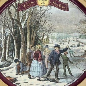 Currier and Ives Tin Serving Tray 1994 Winter Pastime 1855 Round 13"