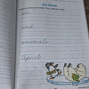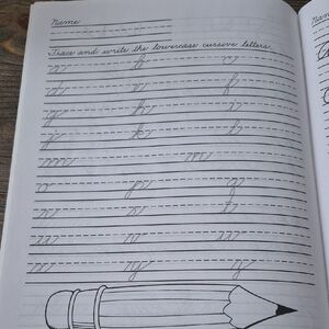 Set of two cursive handwriting practice books. Includes traditional and modern styles. Ideal for learning and improving cursive writing skills.