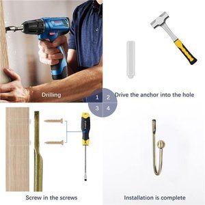 DescriptionAmazing heavy duty metal curtain holdbacks, excellent to give your room a quick and easy revamp.These drapery tiebacks are very easy to install, and coming with screws. Not only apply to curtains holder, but also can hang coat, hat, towel and clothing and so on.The basic curtain hooks provide a neutral look that blends naturally with drapes.Drapery holdbacks makes opening and closing the drapery panels very easy, and they don't wrinkle the drapes as much as the tie backs.SpecificationMaterial: MetalSize: 6"(15 cm) in length, 2.8"(7 cm) in width, diameter of hook: 0.3"(8 mm)Color: BrassPackage included2* Metal Curtain Holdbacks4* Screws4* Anchors