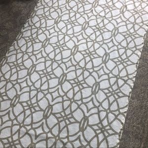 Pretty curtain panel, ivory/off-white with a sort of taupe color design. Tried to take pics in different lighting. Has rod pocket and back tabs so can be hung either way. It is not lined. Must have been standard size when purchased however, upon measuring, it’s approx 46”x80”. I must have accidentally put it through the dryer instead of line dry. It’s in otherwise great condition with no stains, tears or holes. Fairly certain it’s Allen & Roth from Lowe’s. From a smoke and pet-free home.
