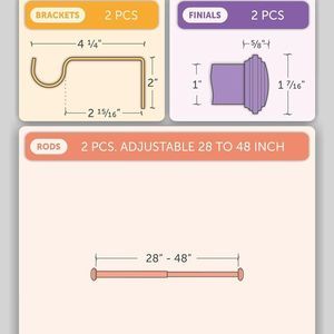 Ivilon drapery rod sets comes with telescoping rod, Metal finials, brackets, hardware and instructions.