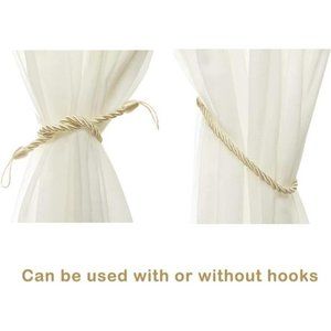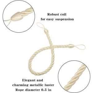 Curtain Rope Tiebacks, Drapery Rope Holdbacks with 4 Metal Screw Hooks (Beige)