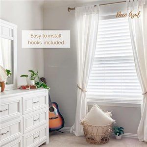 🧿Easy to install: 2 brass hooks included for your convenience. Attach the brass hook to the wall and tie back the drapes.