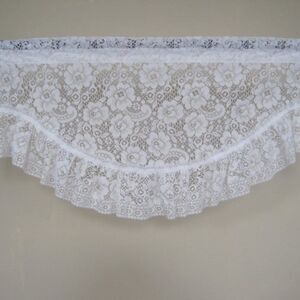 Curtain Lace Ruffled Valance Floral Flowers 39.5" W x 19" L Cottage Chic Vintage