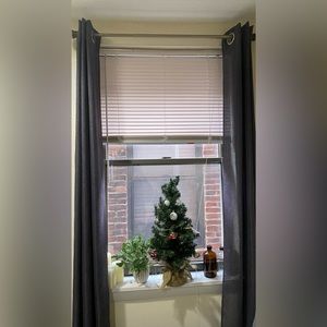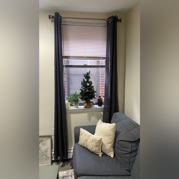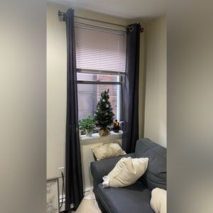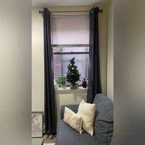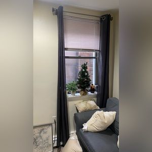 Gray window curtains with metal rings. I have 2 sets of 2 panels, selling each set of 2 panels.