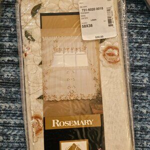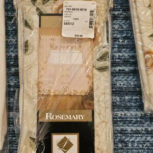 One (1) Lorraine Home Fashions Rosemary Tailored Valance width 58 inches X length 12 inches. Color = Linen with embroidered flowers (tan) and leaves (green)