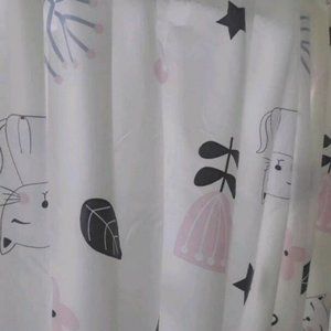For the lower floor, you tie the rope to the pole, then hook the curtain to the hook and hang it on the rope.