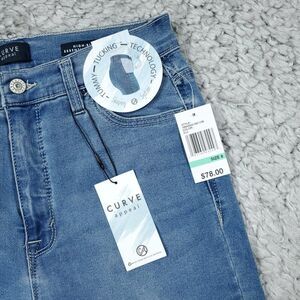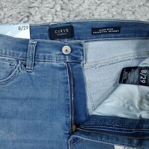 Women's Curve Appeal High Rise Essential Skinny jeans in medium wash blue stretch denim. New with tags. Women's size 8 or 29, real measurements shown in photos with jeans laid flat: