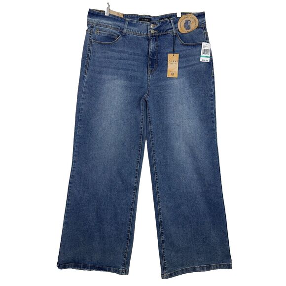 Curve Appeal Jeans High Rise Wide Leg 16/33 Hampton Blue Tummy Tucking Technology NWT
