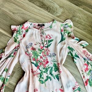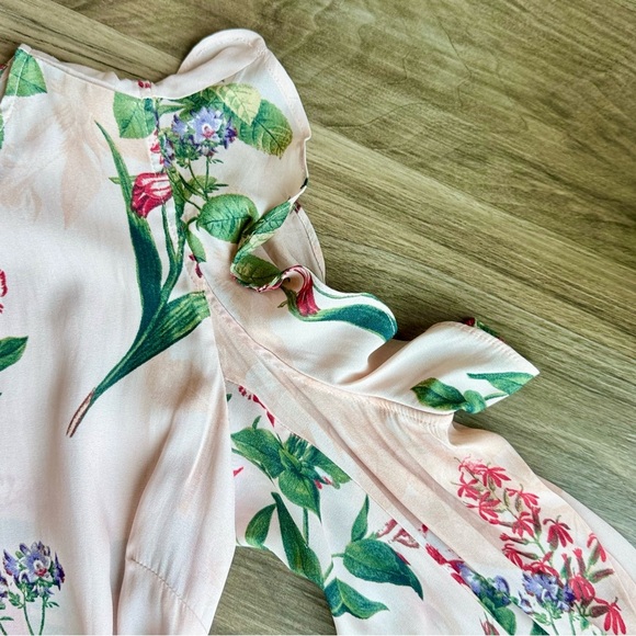 Curve Appeal Pink Floral Ruffled Cold Shoulder Flutter sleeve Blouse – Size S