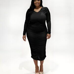 Curve Envy Ruched Midi Dress-Black/Plus Size