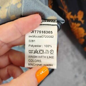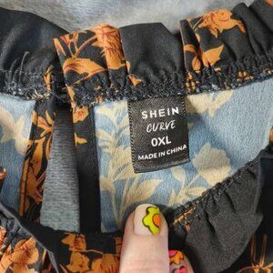 Add a bold floral statement to your wardrobe with this SHEIN Curve long sleeve blouse in size 0XL. Features a black base with all-over orange floral print, high gathered neckline, and keyhole button closure in back. Made from lightweight 100% polyester for easy care and all-day comfort. A flattering piece that works well tucked into trousers for the office or worn loose with denim for casual fall outings. Feminine, flowy, and perfect for seasonal transitions.