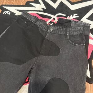 Curve Jeans x Kody Phillips denim in size 38, black wash. Rare designer collab piece with unique detailing and quality construction. Perfect for collectors and denim enthusiasts.