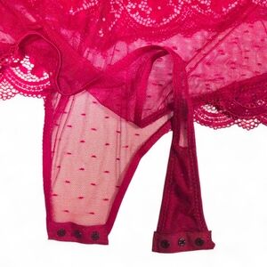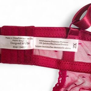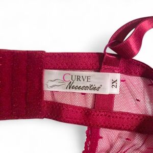 Curve Necessities 2X Sheer Lace Bodysuit w/ Demi Bra & Thong Back Red Plus Size