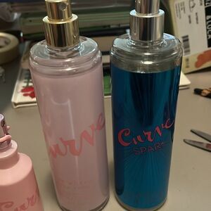 Curve, pink blossom, perfume and body spray and curve, spark body spray. The perfume has been squirted once the body sprays a few times, but they are literally almost full.