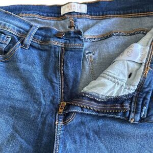 The medium to dark wash Curve Appeal Jean Shirts are a soft denim and has stretch for overall great fit. 5 pocket design with smooth zipper and button closure. Very good condition!