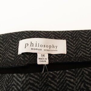 NWT Philosophy Apparel leggings in curvy size 3X. Chevron print in black and grey gives this pair structure and texture without sacrificing stretch. High-rise with sculpting support—easy to style for work or weekend. Graphic enough to stand out, comfy enough to live in.