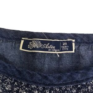 Curvey Textured Navy Shark Hem Flowy Tunic, 2X