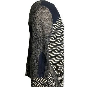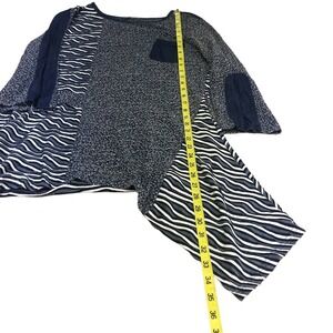 This stylish textured navy tunic is perfect for any occasion. Featuring a cut-out shark hem for a flattering look, it is sure to draw attention. A variety of fabrics give a unique look.