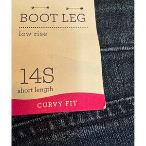 Curvy Boot Leg Jeans Low Rise Size 14S Short Length Dark Wash 77% Cotton Stretch
