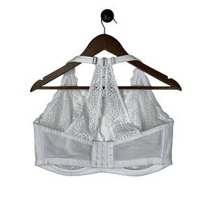 Curvy Couture Women's Crochet Halter Bra Underwire Support White Racerback 38D.