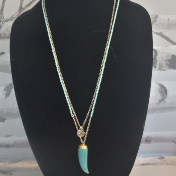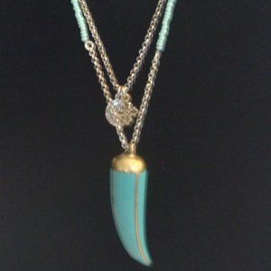 Double Layered Necklace Silver And Turquoise With Gold Accents & Wolf Tooth