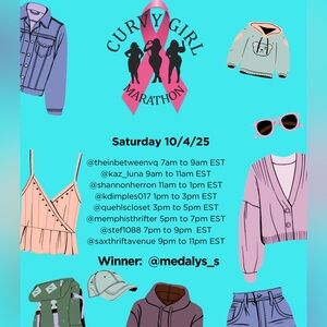 Welcome to the first plus size/curvy girl marathon! We will have great hosts sharing yours and ours! Please come join the fun and shop some amazing plus size items!