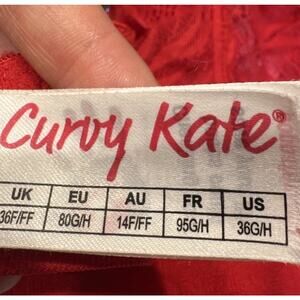 Curvy Kate Red Lace Bralette Bra Women’s Size 36 G/H Wireless READ
