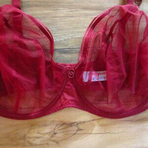 Curvy Kate Red Sheer Lace Lifestyle Plunge Underwire Bra Size 40L