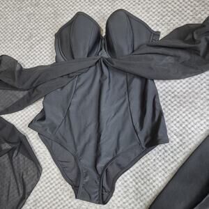Curvy Kate Wrapsody Bandeau Swimsuit Black Size 32DD Mesh Coverup Beach CS005600