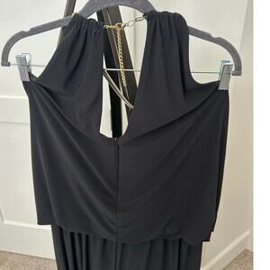 Curvy Plus 2X Halter Sleeveless Wide Leg Jumpsuit Black Gold Collar Dress Barn