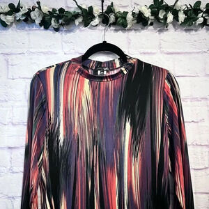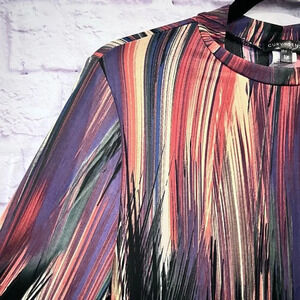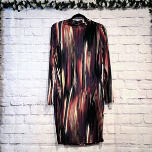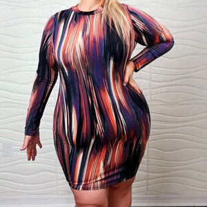 Curvy Sense Size 1X Casual Long Sleeve Abstract Print BodyCon Dress Stretch